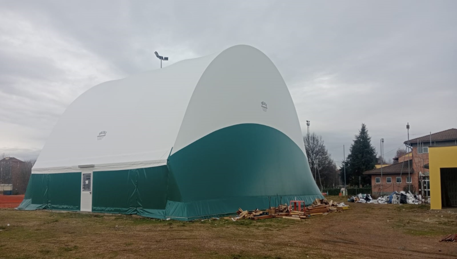 - la realizzazione di una copertura pressostatica dove poter eseguire attività preparatoria, di allenamento e potenziamento atletico al coperto e parimenti rendere accessibile la struttura stessa anche al plesso scolastico limitrofo (aprendo anche in orari mattutini) nonché alla cittadinanza in generale attraverso l’allestimento di un’area attrezzata per il rugbytoys (programma di psicomotricità e sviluppo motorio dei bambini a partire dai due anni), tracciamento per basket e pallavolo;